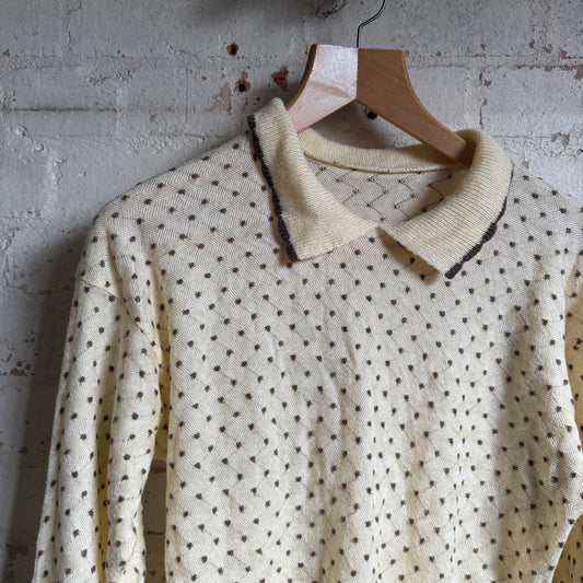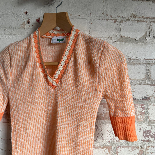 1970s Unusual Grey Design Knitted Long Shawl Collar Dress