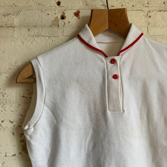 1960s White Ribbed Short-sleeve British Polo Shirt