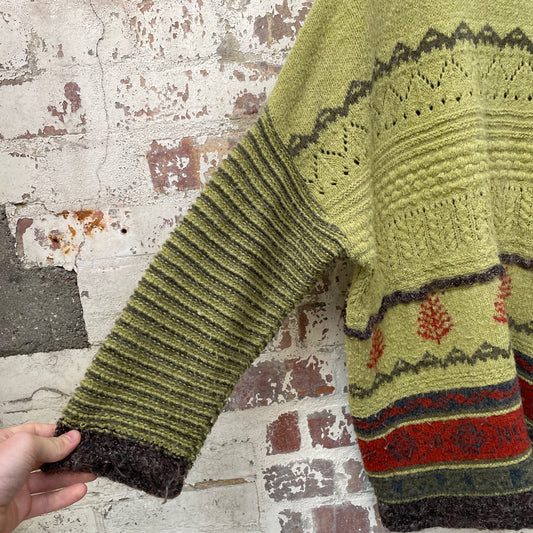 Vintage 1980s 1990s Green Knitted Patterned Jumper