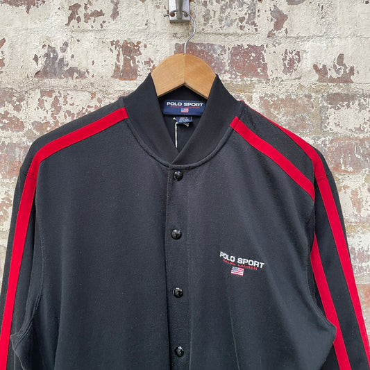 Vintage 1990s Black Polo Sport Ralph Lauren Button Up Sweatshirt Jumper