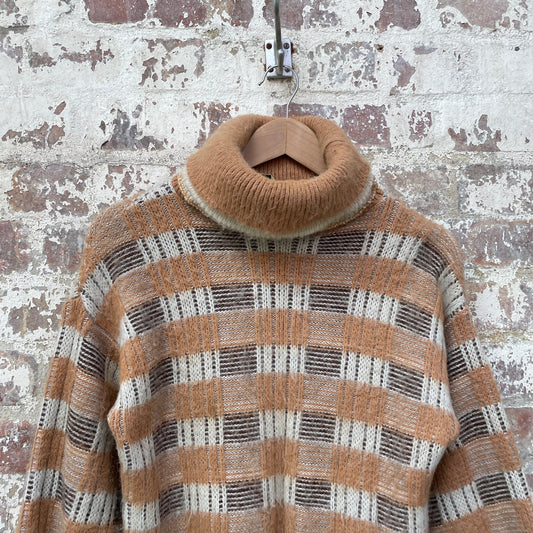 Vintage 1970s 1980s Beige Knitted Roll Neck Scottish Jumper