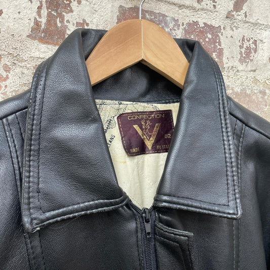 Vintage 1980s 1990s Black Leather Flight Bomber Jacket Coat