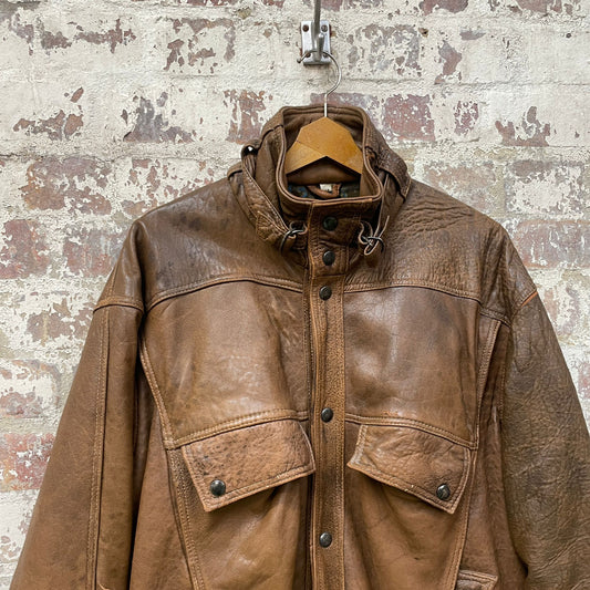 Vintage 1980s 1990s Brown leather Bomber Flight Jacket Coat