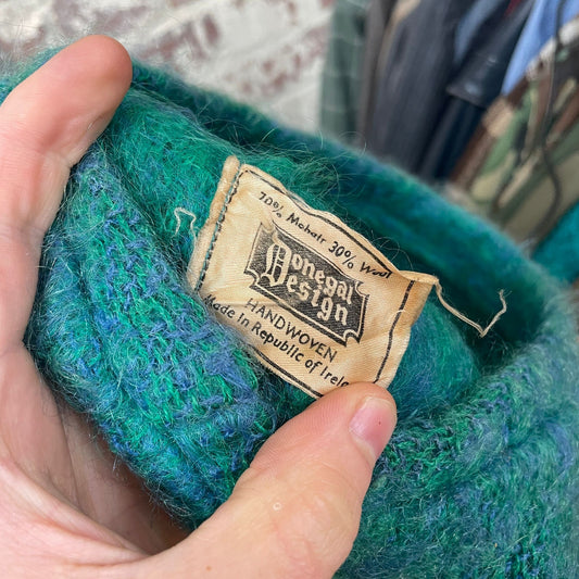 Vintage 1970s 1980s Suede Knitted Cardigan Jumper