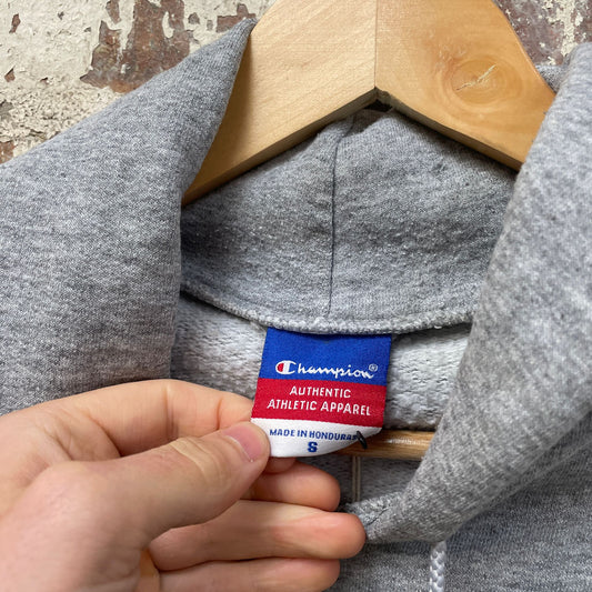 Vintage 1990s Grey College Champion Print Hoodie Sweatshirt Jumper