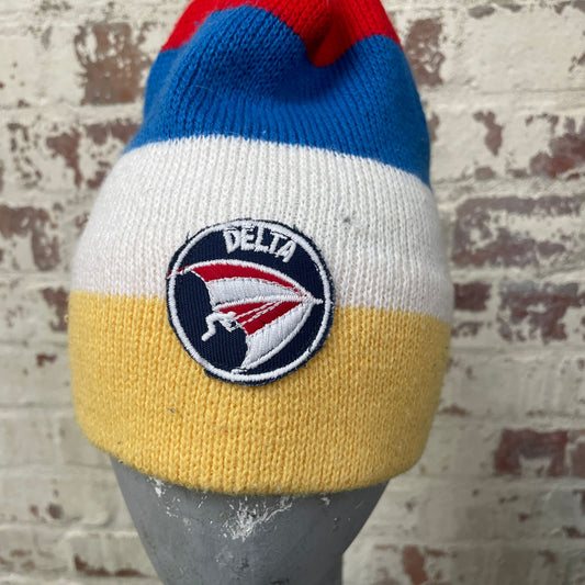 Vintage 1970s 1980s Multicoloured Knitted Beanie Hat