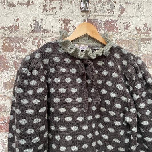 Vintage 1970s 1980s Brown Polka Dot Knitted Jumper