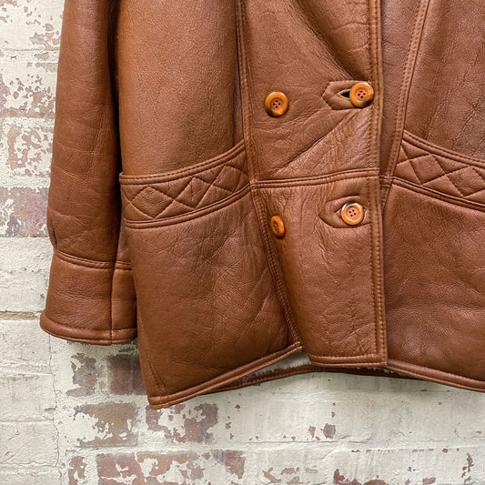 Vintage 1970s 1980s Brown Leather Afghan Jacket Coat