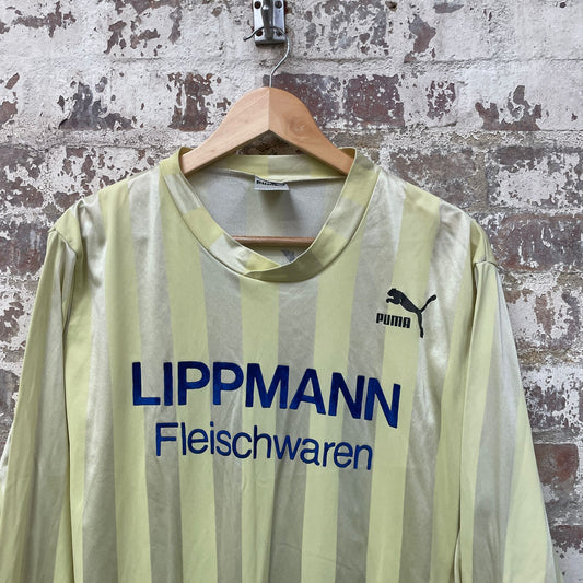 Vintage 1970s 1980s Yellow Puma Print Football Shirt Top