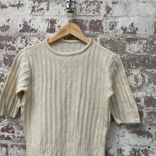 Vintage 1970s 1980s Cream Ribbed Knitted Dress