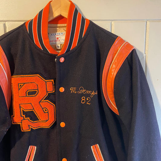 1980s Black and Orange Wool Varsity College Bomber Jacket