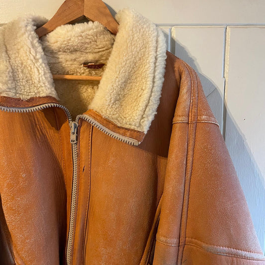 1980s Brown Leather Shearling Sheepskin Flight Jacket Coat
