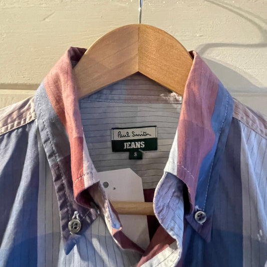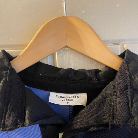 1980s Blue and Black Hockey Check Panel Tailored Rugby Shirt