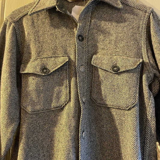 1970s Navy Patterned Dagger Collar Button Up Shirt