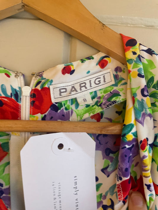 1990s Floral Silk Italian Dress