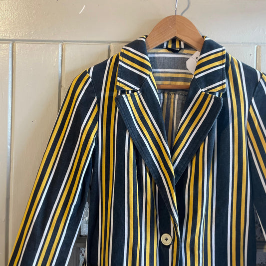 1970s Black Yellow Mod Boating Striped Blazer Jacket