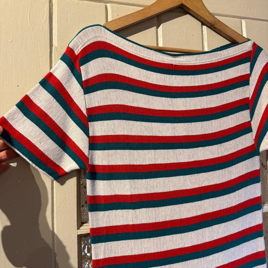 1970s Italian Striped Boat Neck Cotton T-Shirt Top