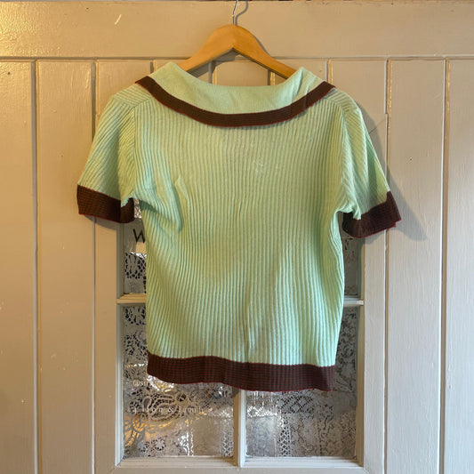 1970s Lime Green Knitted Polo Shirt Top