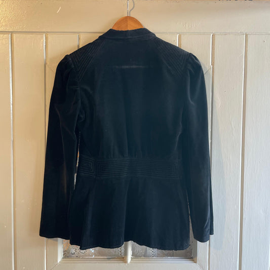 1970s Black Embroidered Velvet Suede Blazer Jacket