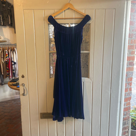 1960s Blue Crushed Velvet Evening Style Dress