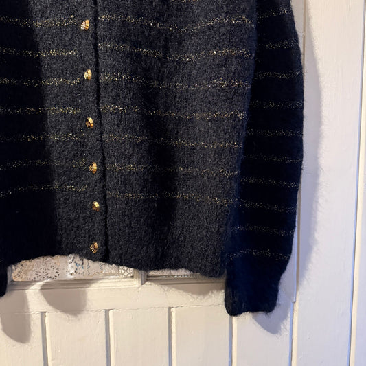 1970s Black Mohair Knitted Striped Cardigan Jumper
