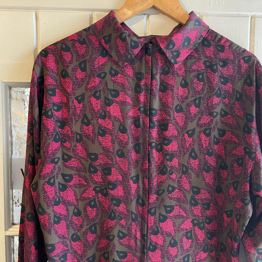 1960s Yellow Rayon Long Sleeve Graphic Top