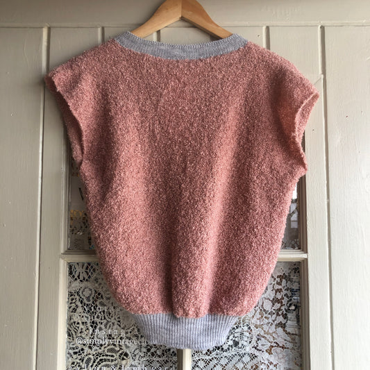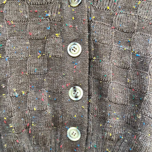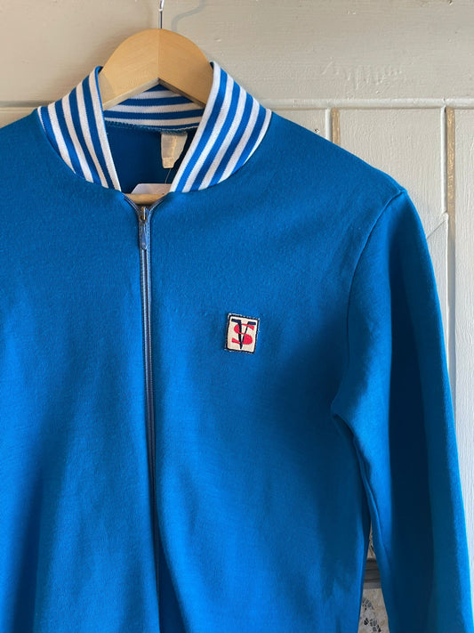 1970s White and Blue Hand Knitted Cardigan Jumper