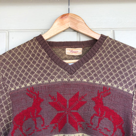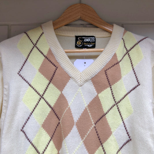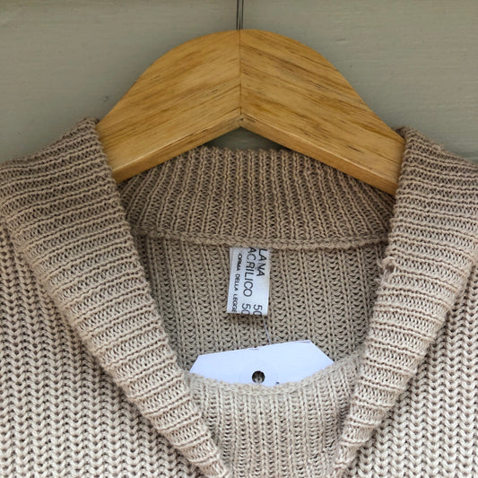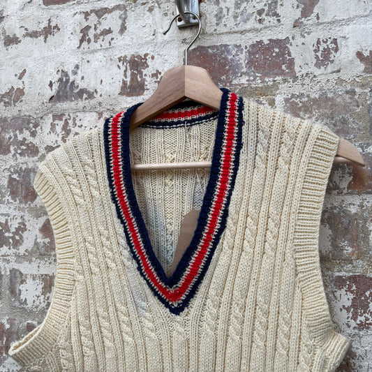 1970s Two Tone Wool Fisherman Knitted Jumper