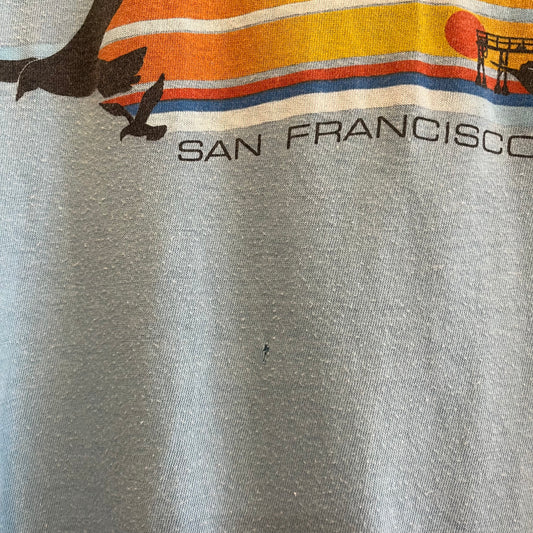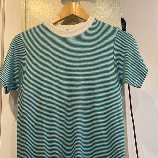 1960s 1970s Turquoise Striped Surf T-Shirt