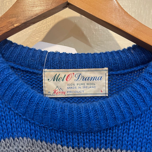 1960s Blue Knitted Wool Patterned Jumper