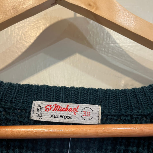 1960s Dark Green Knitted V-neck St Michaels Jumper