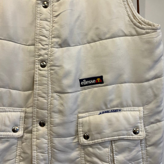 1980s White Ellesse Puffer Gilet Jacket