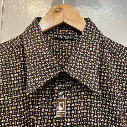1970s Brown Patterned Italian Button Up Shirt