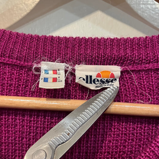 1980s Purple Ellesse V-Neck Knitted Jumper