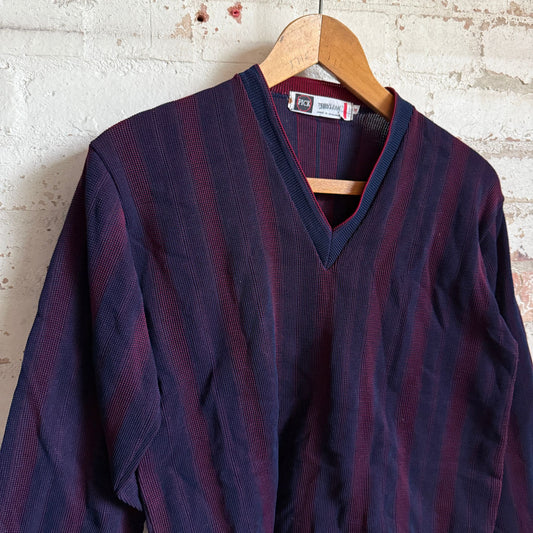 1980s Black and White Striped Boat Neck Long Sleeve Top