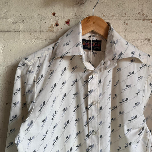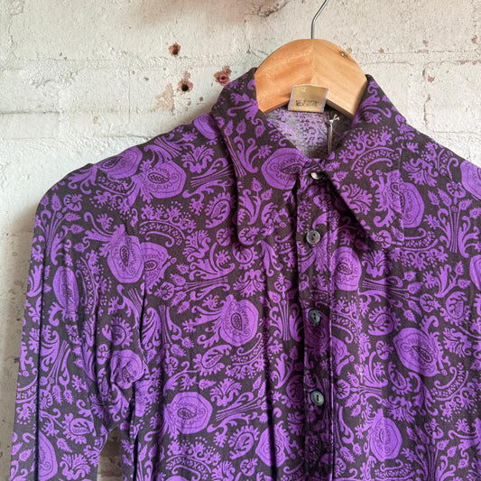 1970s Rayon Purple Graphic Loop Collar Shirt