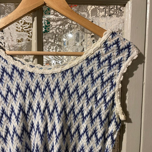 1970s White and Blue Knitted Vest Blouse