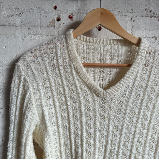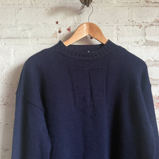 1970s 1980s Navy Guernsey Patterned Fisherman Jumper