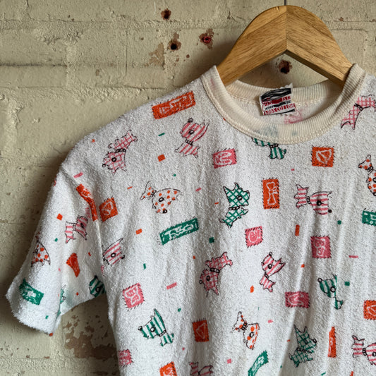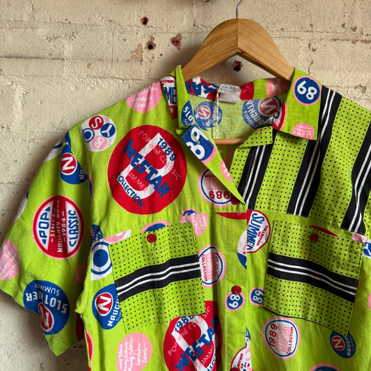 1980s Green Pop Art Graphic Short Sleeved Shirt