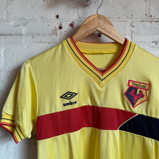 1980s Yellow Umbro Watford Home Football Kit Shirt
