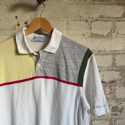 1970s White Adidas Ventex Long Sleeve graphic Top
