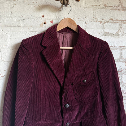 1960s Burgundy Corduroy Belt Back Suit Blazer Jacket