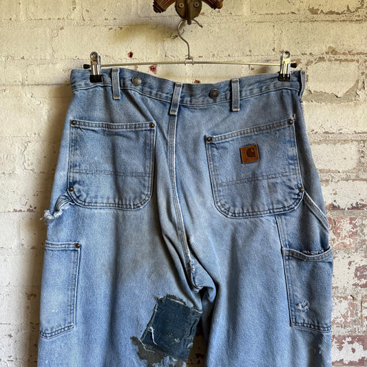 1980s Blue Carhartt Patchwork Denim Work Jeans