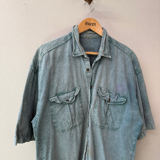 1980s Stone Wash Turquoise Button Shirt