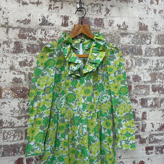 1970s Green Cotton Printed Long Dress