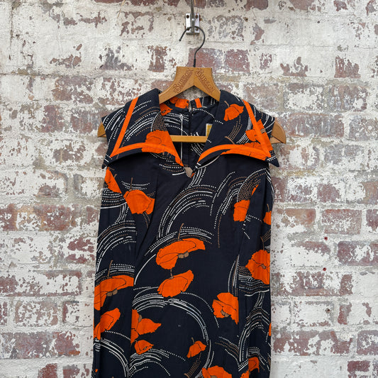 1970s Orange and Black Print Cotton Dress