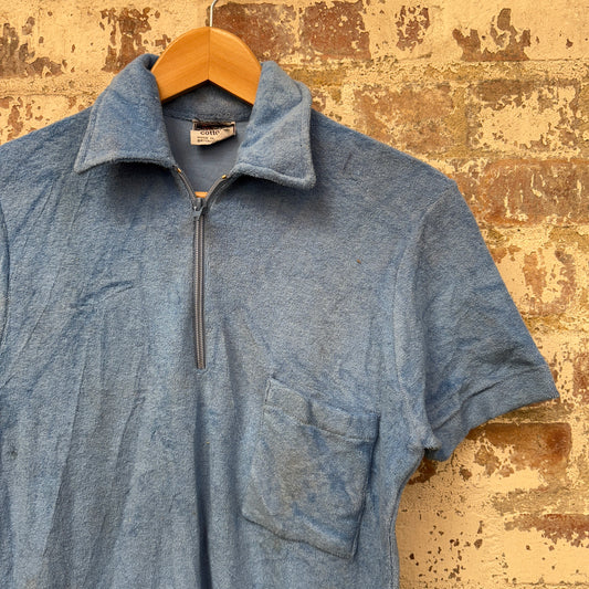 1970s Blue Towelling Zip Polo Shirt Top