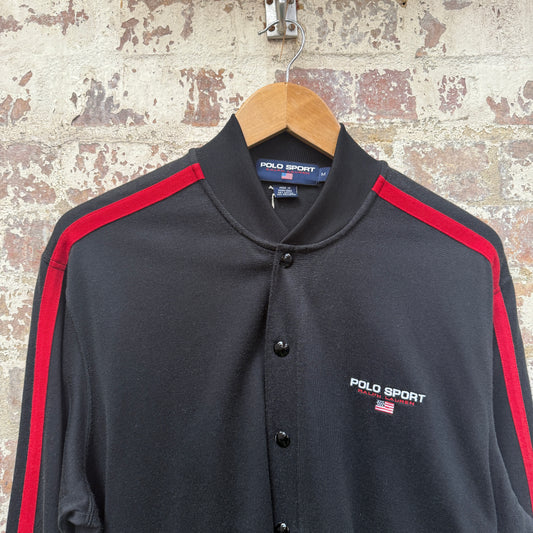 1990s Black Polo Sport Ralph Lauren Button Up Track Top