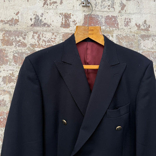 1980s Navy Magee Double Breasted Suit Blazer Jacket