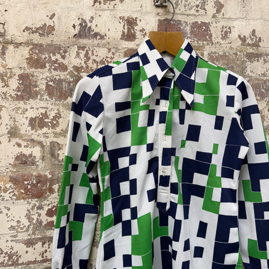 1970s Italian Patterned Dagger Collar Shirt